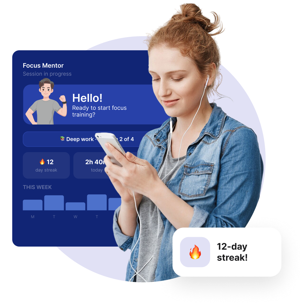 Focus Mentor makes it easy: simple to use, visible progress, and just enough reward to make showing up every day feel genuinely satisfying.